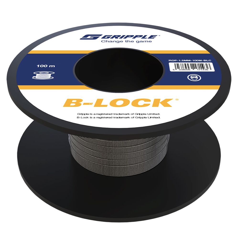 GS Products supply B-Lock Gripple steel wire rope in 2.5mm diameter and 7x7 strand on 100m reels.