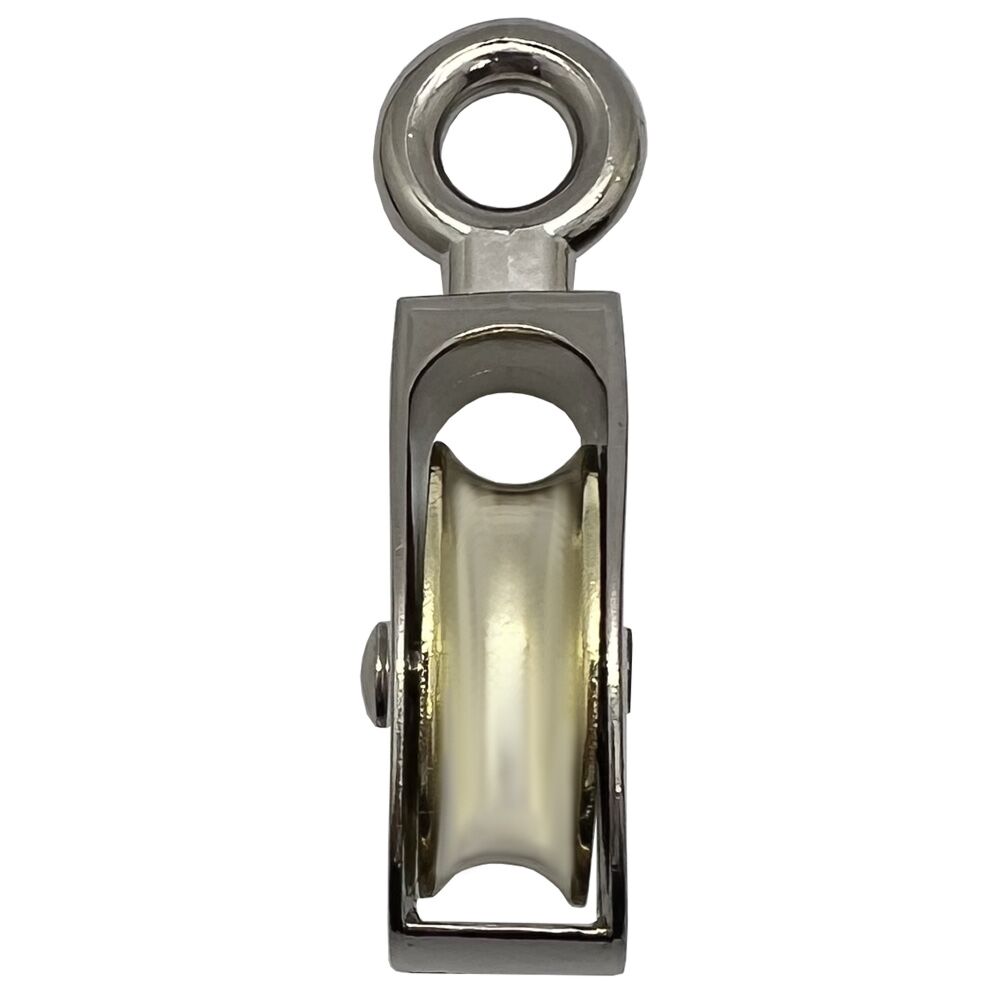 These bright zinc plated die cast pulleys have a 20mm single wheel. This model suits a rope diameter of 4mm.