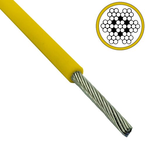2mm-3mm 7x7 Yellow PVC Galvanised Steel Wire Rope - Per Meter