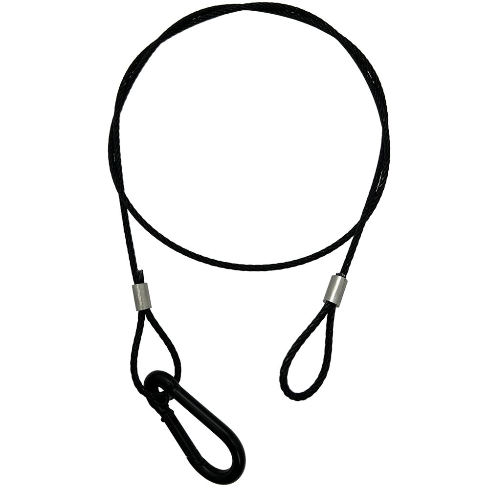 - 3mm diameter blackened galvanised steel wire rope with soft loops and 60mm captive snap hook