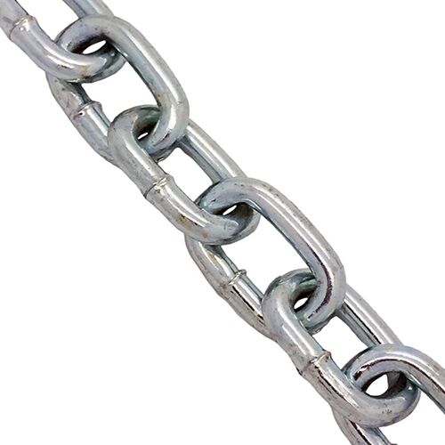 Take a look at this reliable, 5mm x 28mm bright zinc plated mild steel chain with a shiny finish.