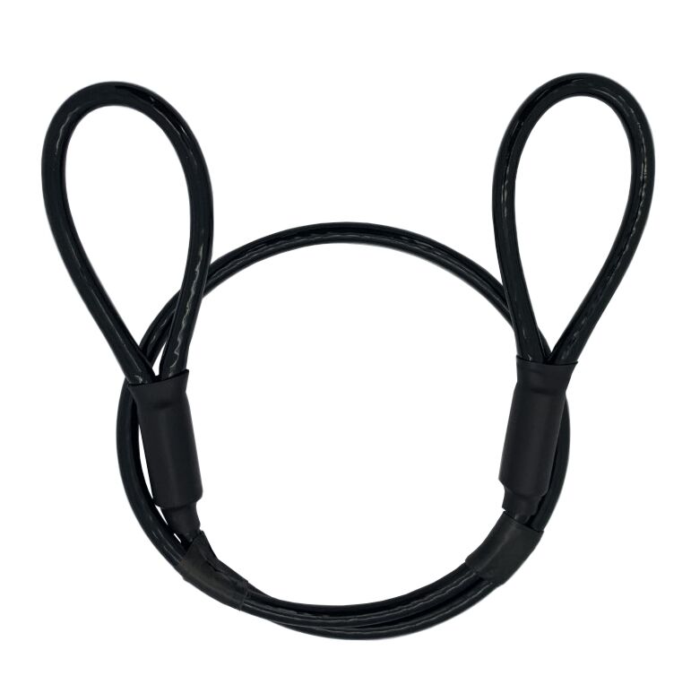 This loop / loop end security cable is made from 4mm 7x19 galvanised steel wire with a tough NYLON black coating taking the overall diameter to 5mm. It is flexible enough to wrap around lamp posts, railings, racks, kayaks, canoes, garden patio furniture