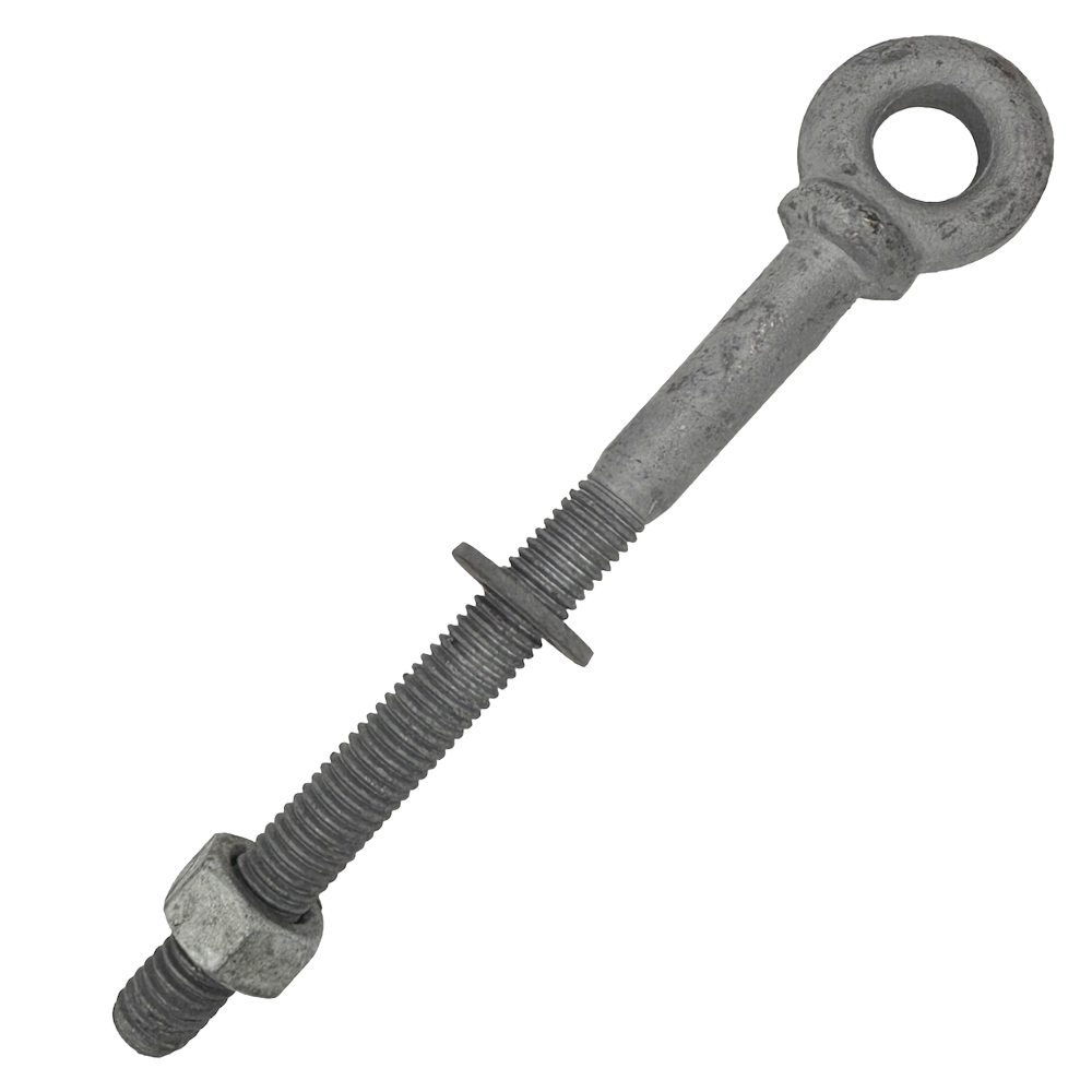 Our 6mm long threaded hot dipped galvanised steel longshank eye bolts are ideal for fencing, gardening and many other commercial applications. Nut and washer included.