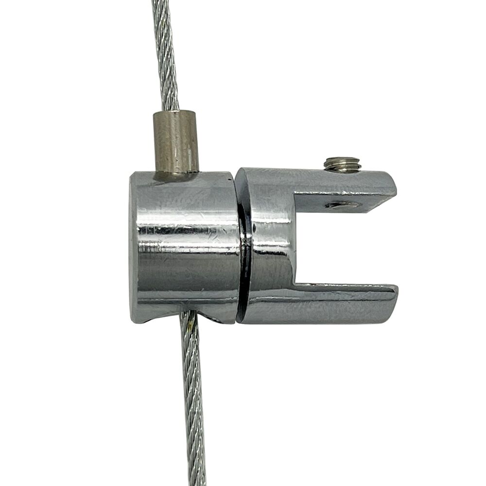 This single clamp rotates 360 degrees and can hold signs or panels vertically or horizontally. It can be used with 1.2mm - 2mm diameters of steel wire rope.