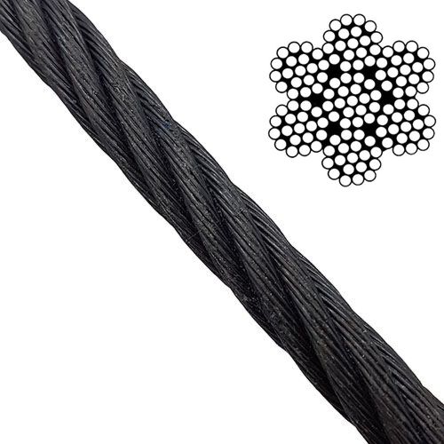 7x19 Galvanised Steel Blackened Wire Rope - Per Meter