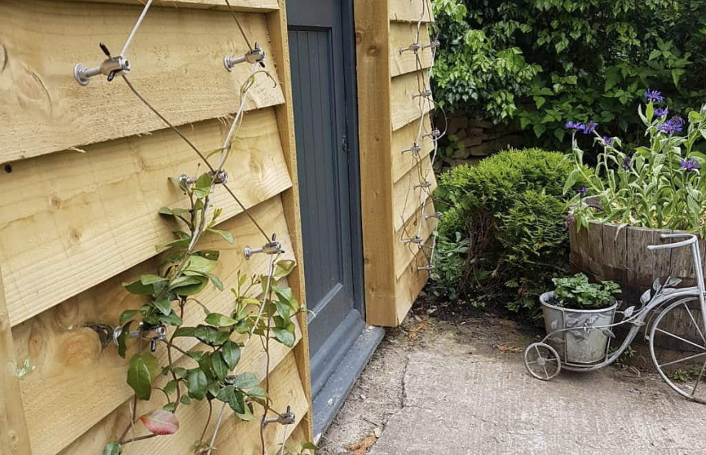 This is an example of a steel wire trellis system used with wooden cladding in Bewdley, West Midlands