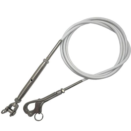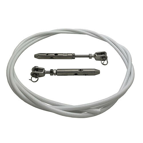 Guard rail kits use our 4mm stainless steel wire rope with a white pvc coating and come with DIY easy to fit jaw ends terminals that can be adjusted to keep tension on your guard rail line. Lifelines are one of the most critical safety components on our boats. Whilst they are something to lean against whilst cruising, or hiked from when racing, their most important role is to act as the last and final attempt to keep your crew member safely onboard your boat, they generally fasten onto your boat stanchions
