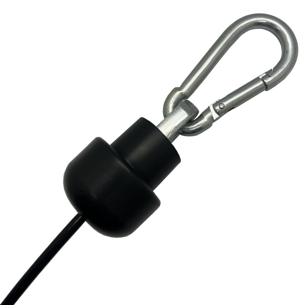 It is supplied with a 80mm length snap hook which is perfect for gym wire attachments