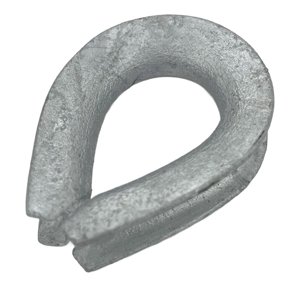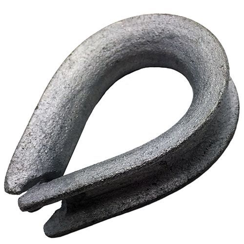 Hot dipped galvanised steel wire rope heart shaped thimbles to BS 464 specification.