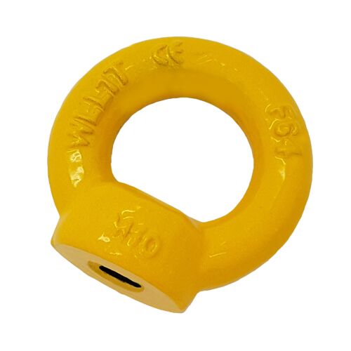 These 8mm eye nuts are yellow painted(may be supplied in red), with their working load limit displayed on the body.