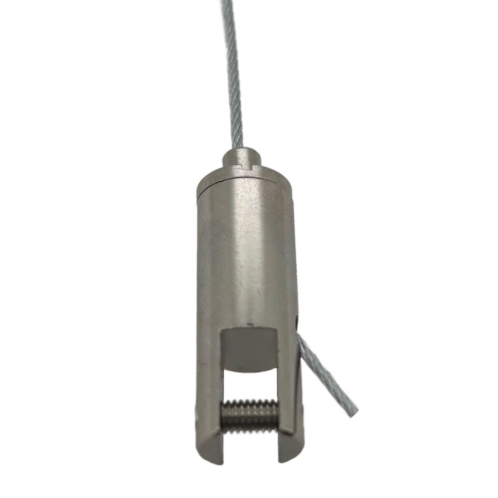 This zinc plated panel gripper suits 1mm - 1.5mm diameter steel wire ropes.