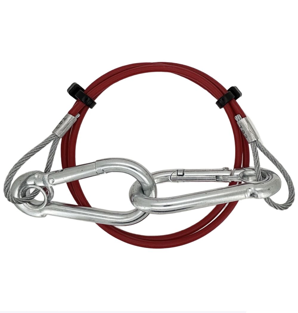 - Steel wire rope break away cable with 80mm carbine snap hooks at each end