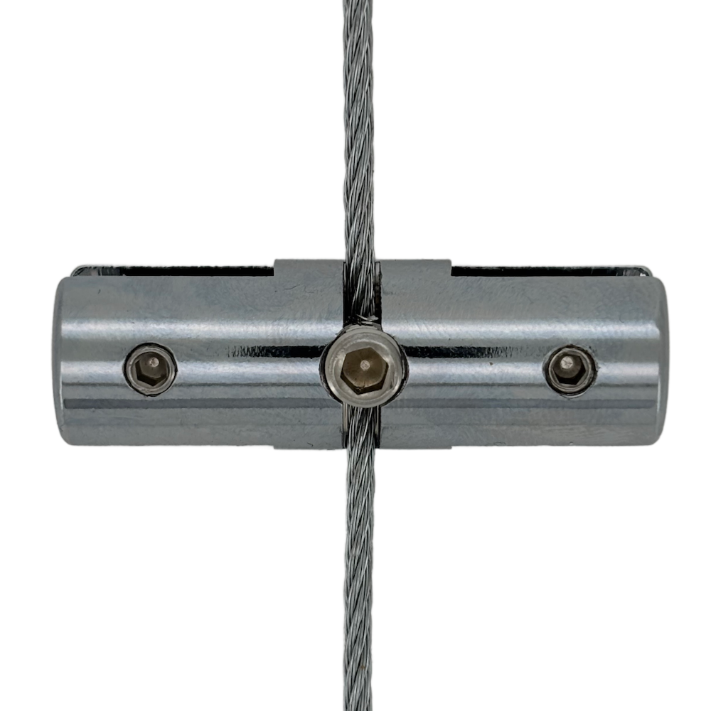 Round double fixed clamps are used for securing shelves, window wire displays, signs, pockets and panels to 1mm - 2mm diameter wire rope