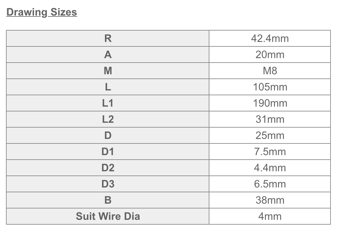 Suitable for 4mm diameter stainless steel wire rope, ideal for straight runs or angles up to 35 degrees