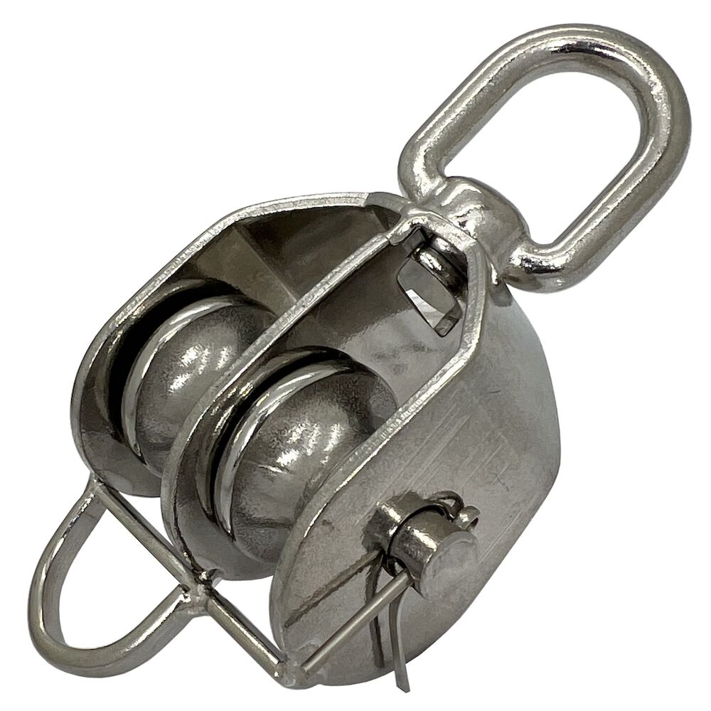 Stainless Steel Swivel Eye Double Wheel Pulleys - Removable Wheels