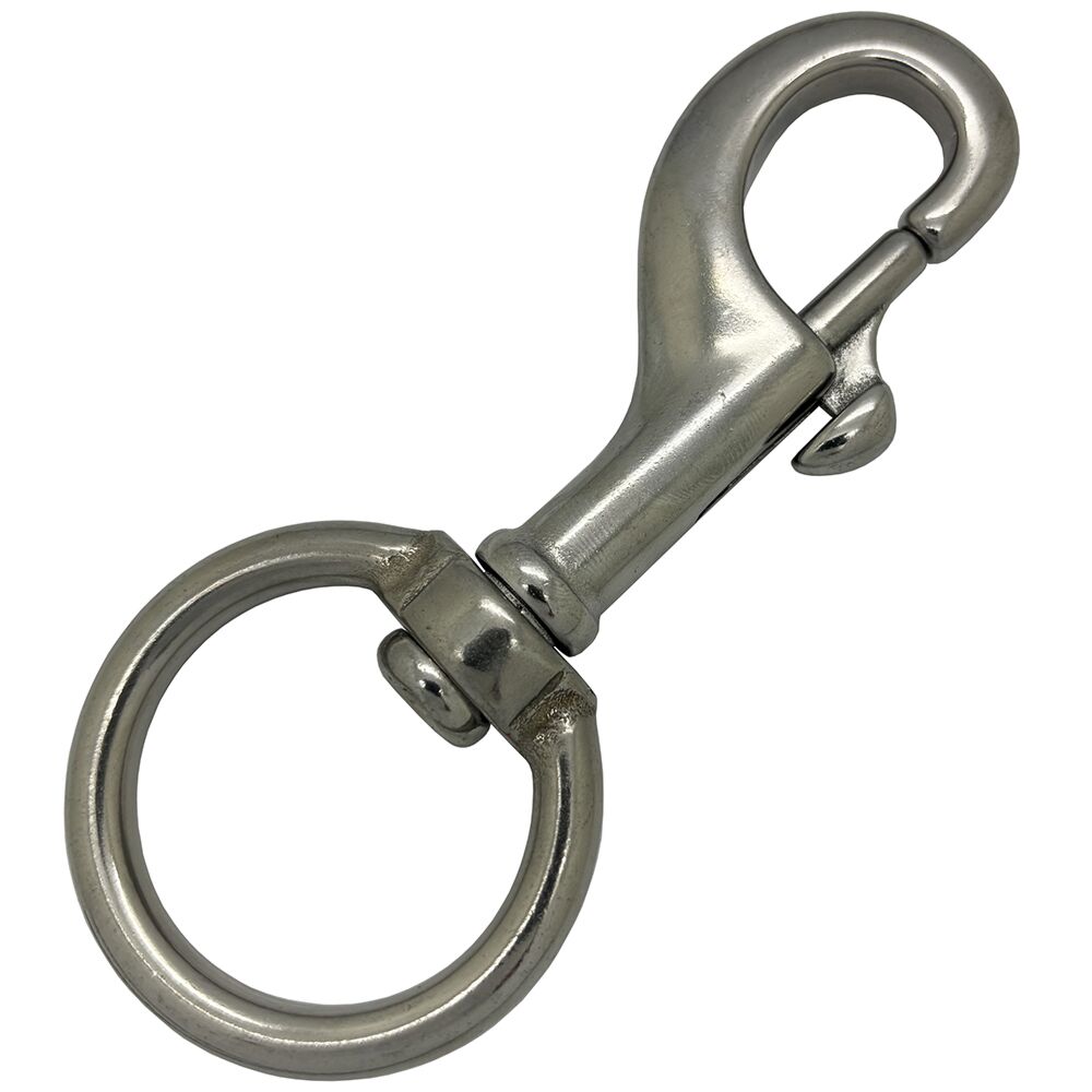 This trigger hook is commonly used for diving, marine applications, securing animals or a general key ring swivel trigger hook