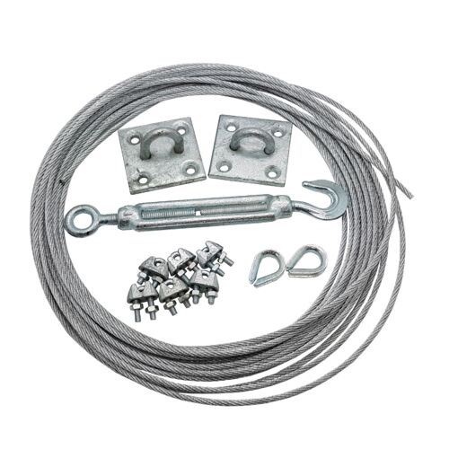 GS Products supply a galvanised steel wire rope catenary kit that will create a 10m run.