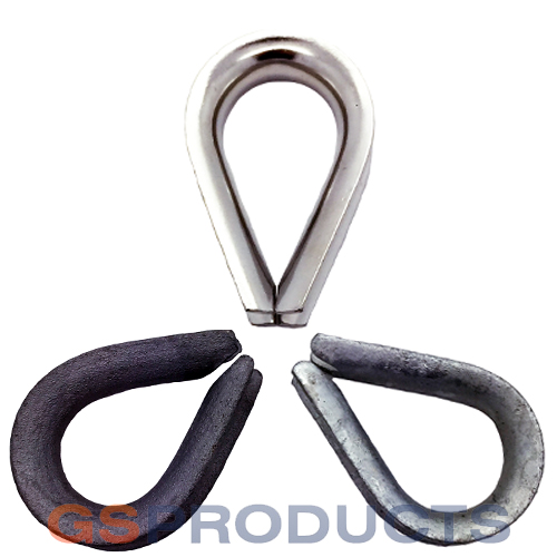 Our range of wire rope thimbles offer protection to your steel wire rope and allow you to form a loop in the rope. They can be fitted inside a loop to maintain shape and protect from damage and pinches. They are also known as a hard eye, steel wire rope eyelet, wire rope loop eyes and wire rope thimbles.
